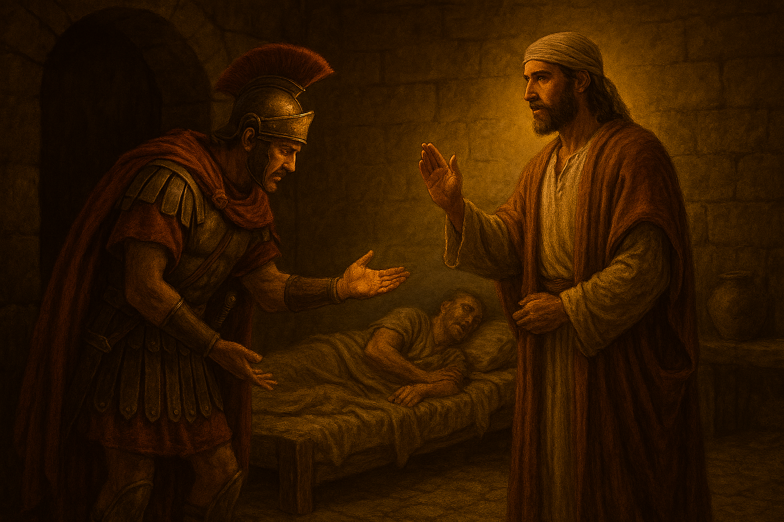 百夫长把对自己职位和权柄的理解应用到耶稣身上,以他作为罗马军官的经验作为类比。耶稣基督既然是天国的君王,他就把盼望押在君王的权柄上。