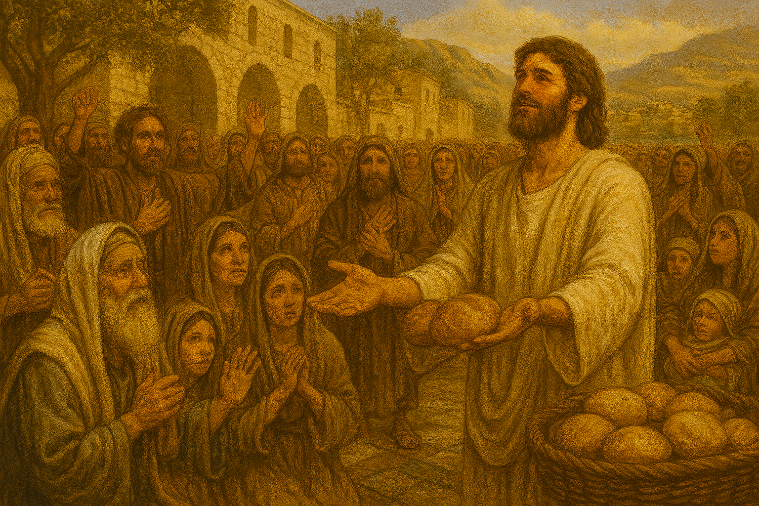 “万民都举目仰望你,你随时给他们食物。你张手,使有生气的都随愿饱足。”